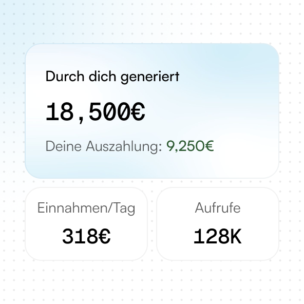 Verdiene ⌀ 318€ pro Verkauf, der durch dein Video entsteht.